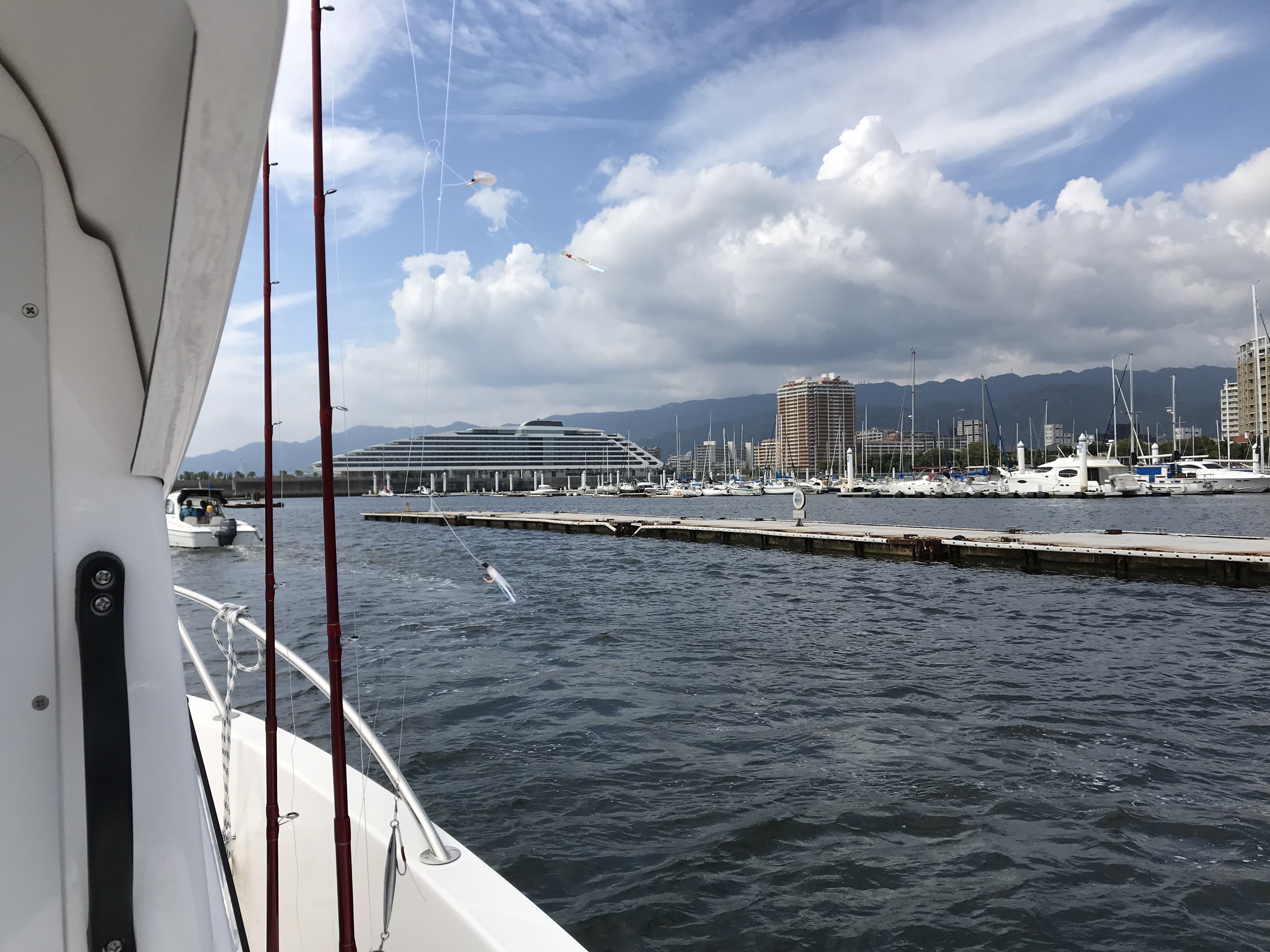 堪能したシースタイル・フェスタは17時で終了したので、せっかくだからと、そのまま西宮ケーソンに移動して太刀魚ジギングをしたのです。(そのつもりで釣りの準備もしてきました)