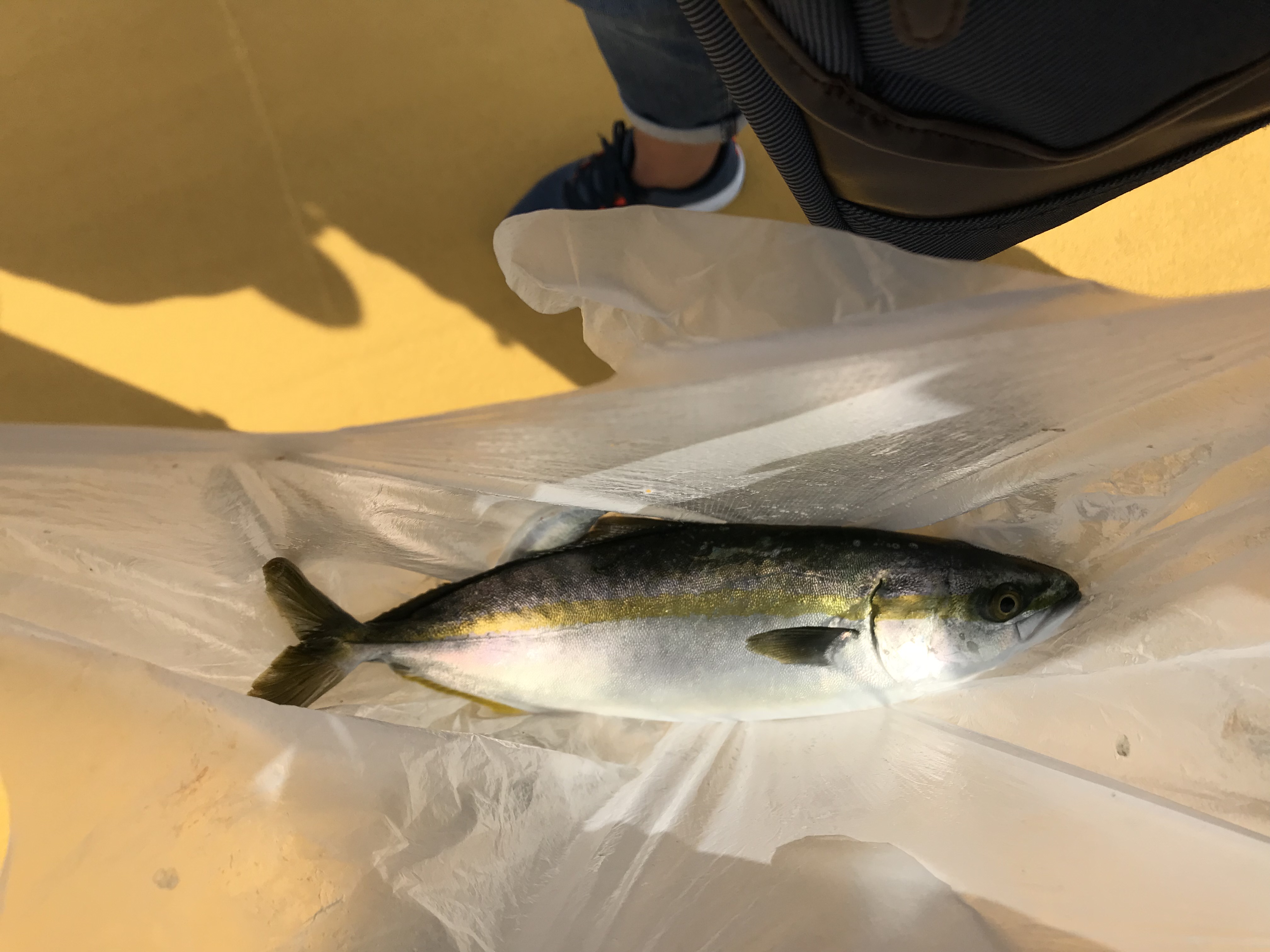開始早々、ミヨシにいた一人にヒットし、よいサイズのアジが上がってきました。こちらはまったくの無反応の状況が続きます。
