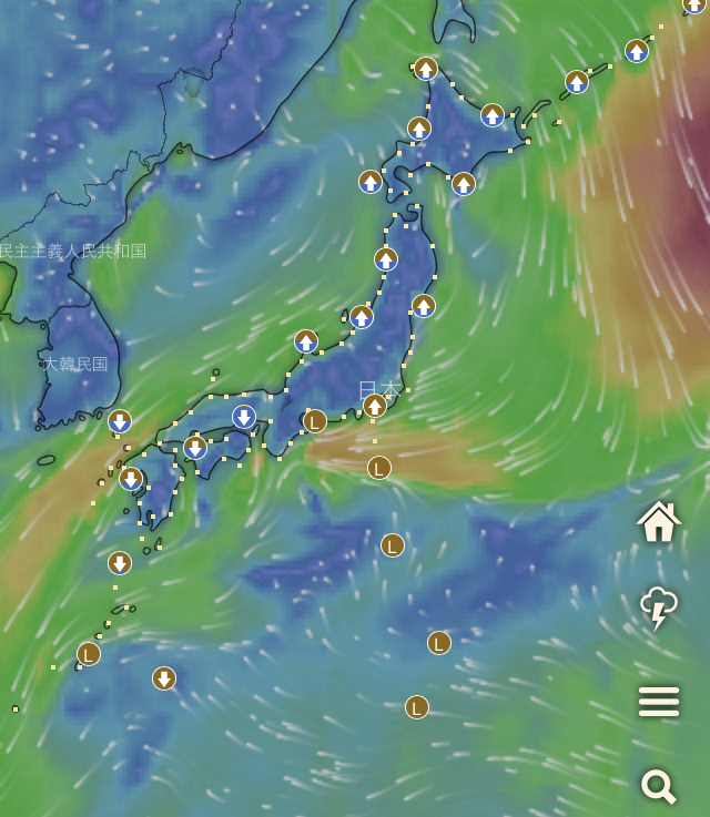「Windy」は海外の?アプリようなので見方に慣れる必要があるかもです。無料で全ての機能が使用で出来ますがアプリに寄付する事も出来ます。これは完全に自由となっています。