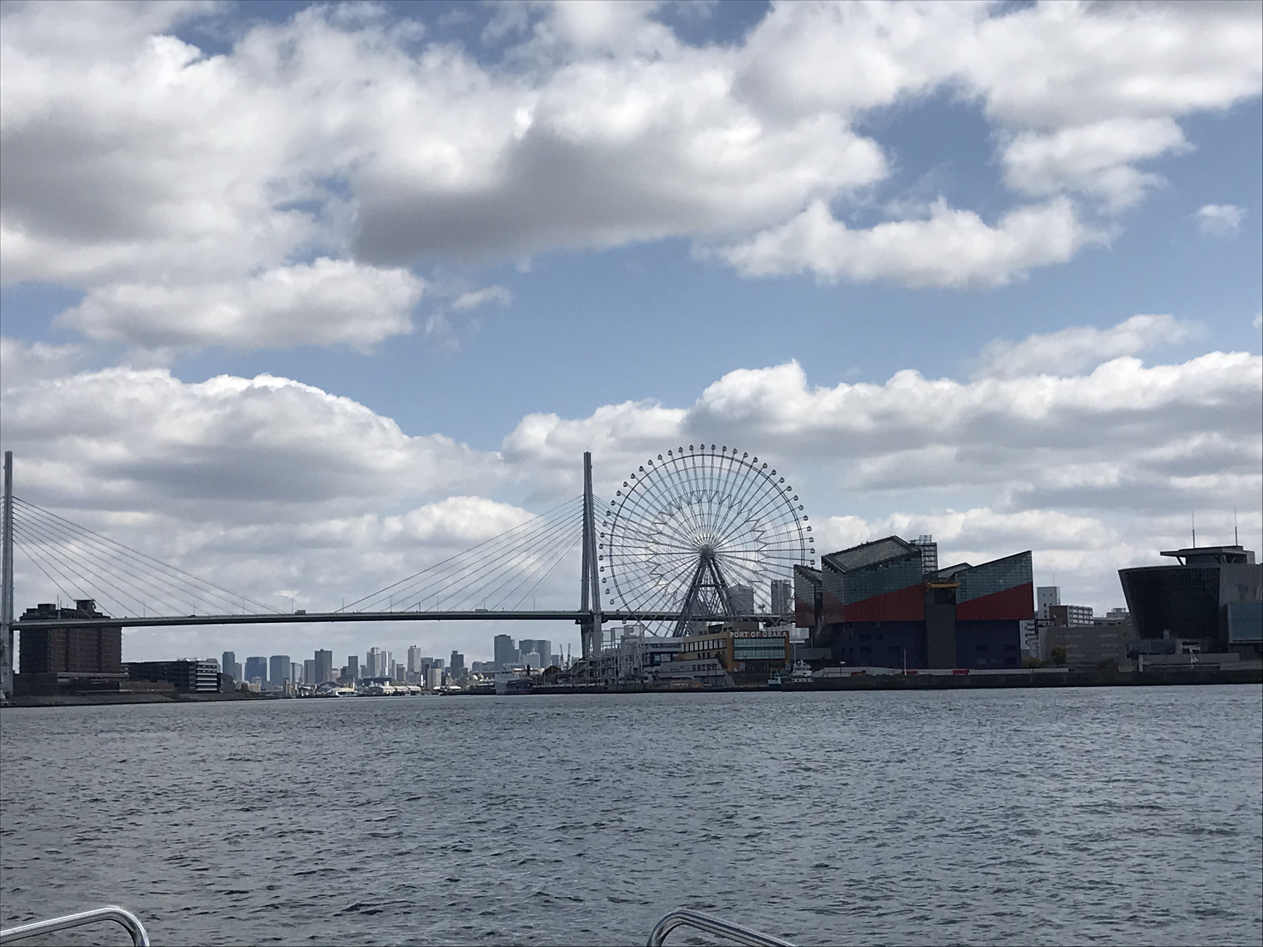 行きは風は少し冷たいけど、ベタ凪でスイスイと航行し天保山へ!