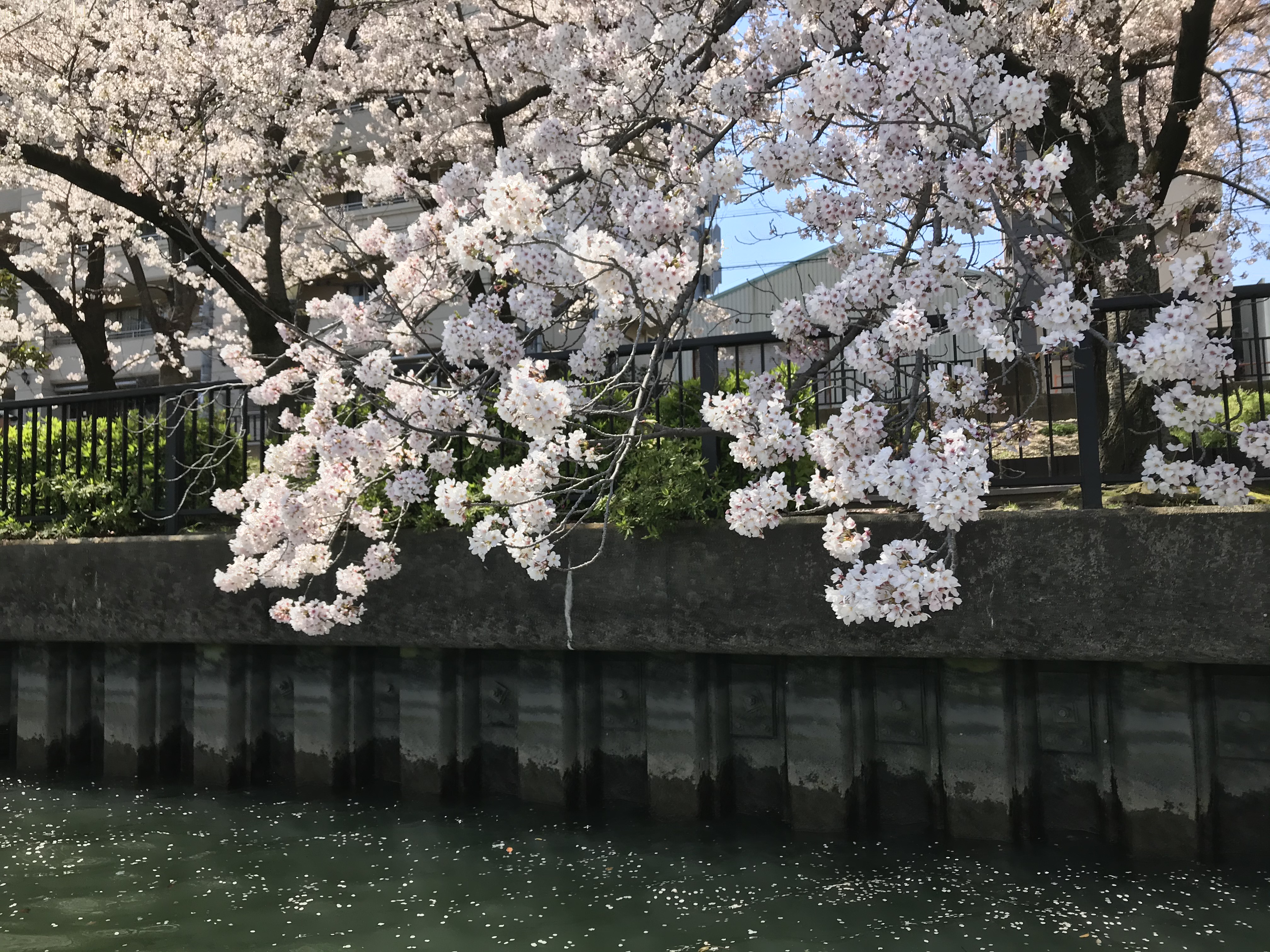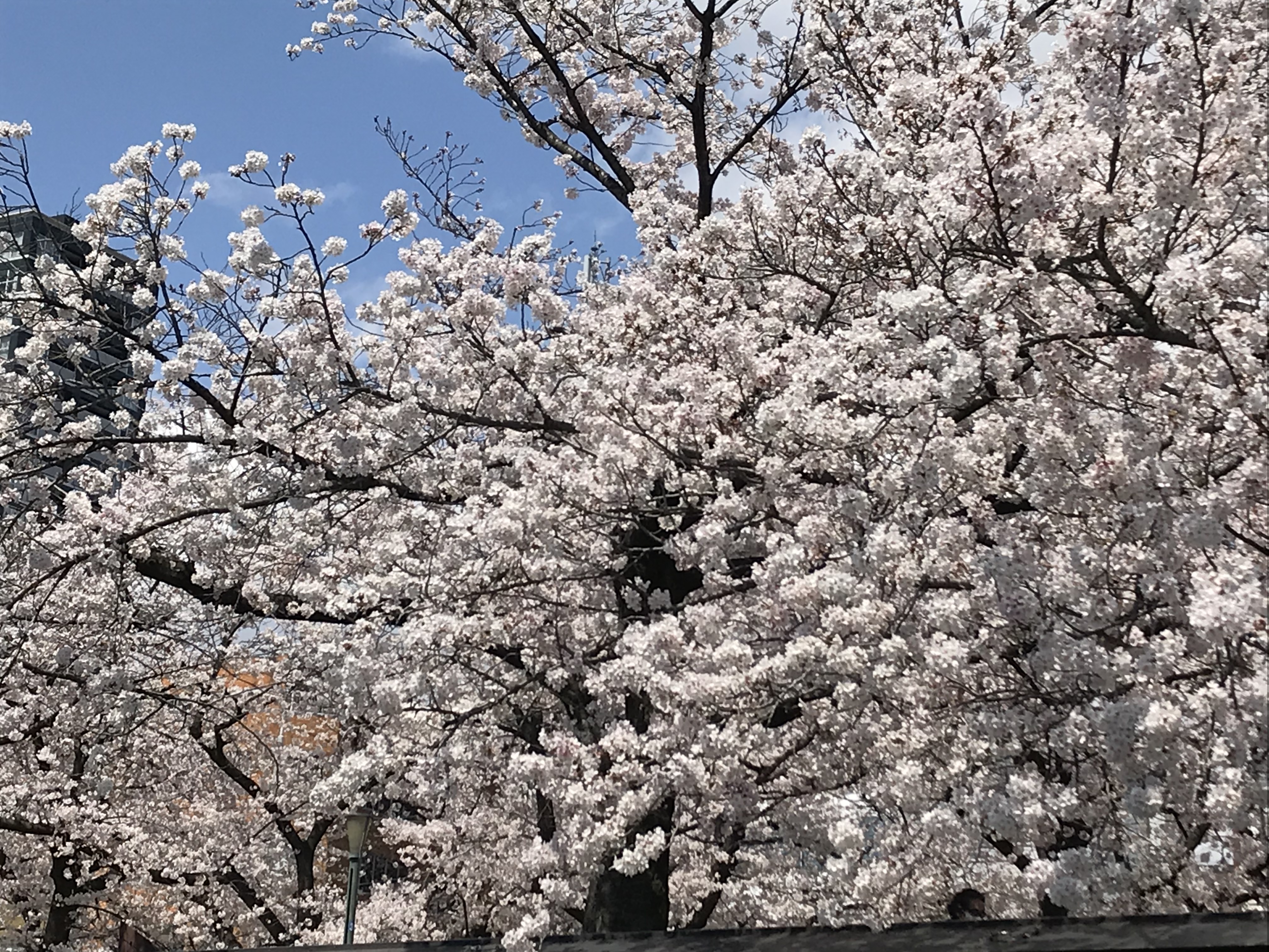 当初は3月下旬ごろに満開になり4月に入ると桜吹雪の予報がずれて今が満開!!