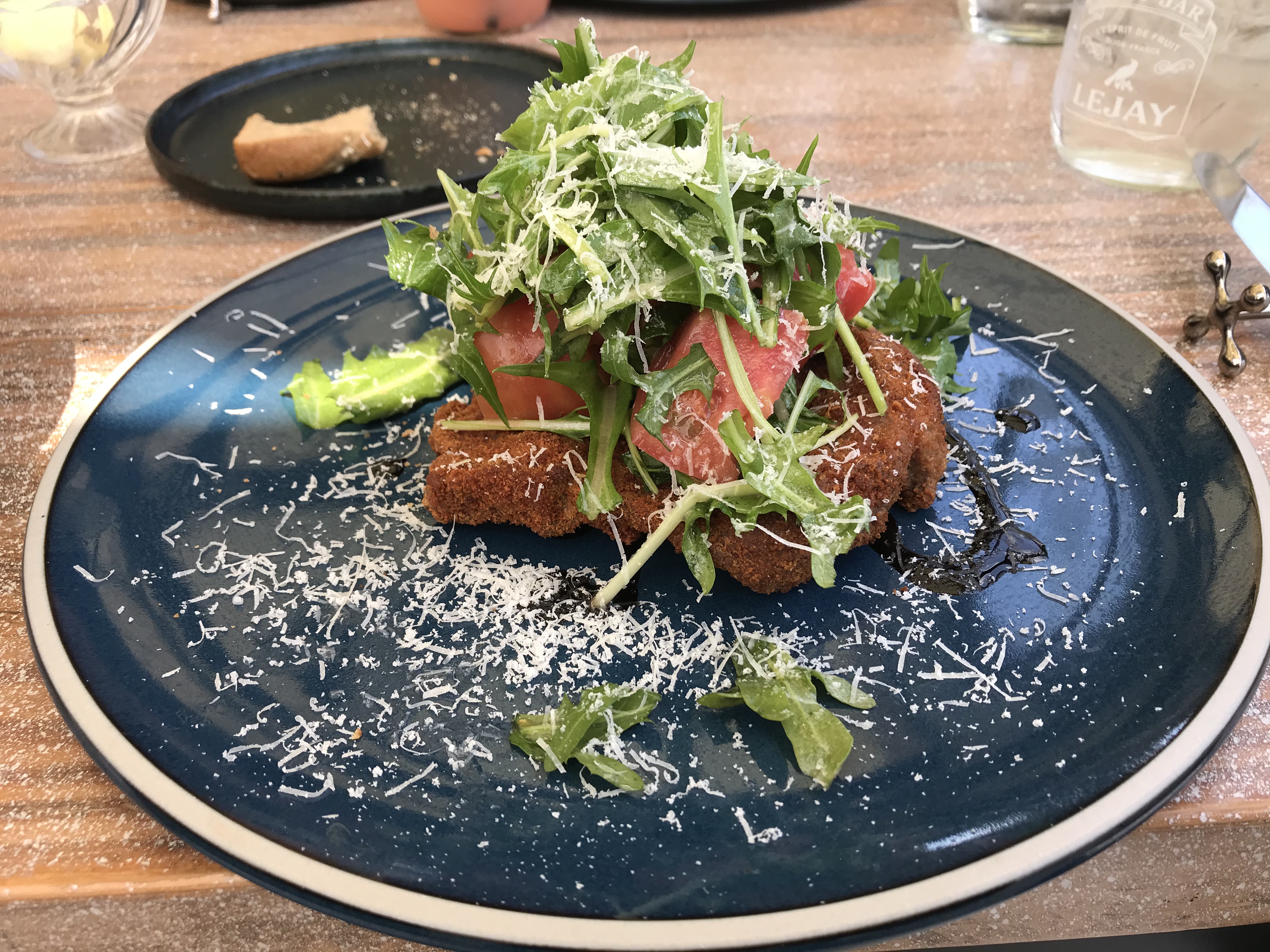この日はもっともボリュームがありそうな「ゴランド豚 茶美豚の厚切りミラノ風カツレツ」でした。