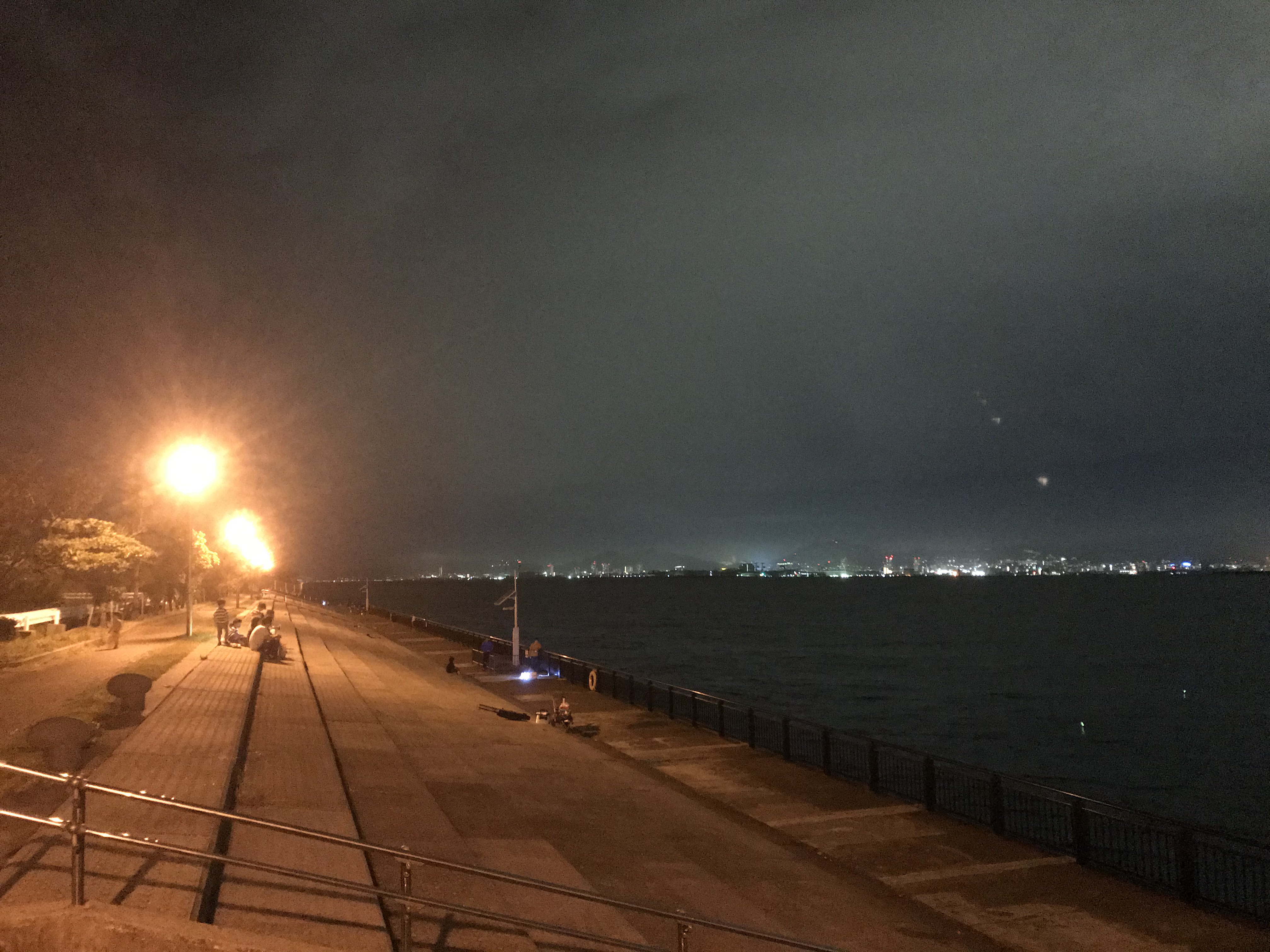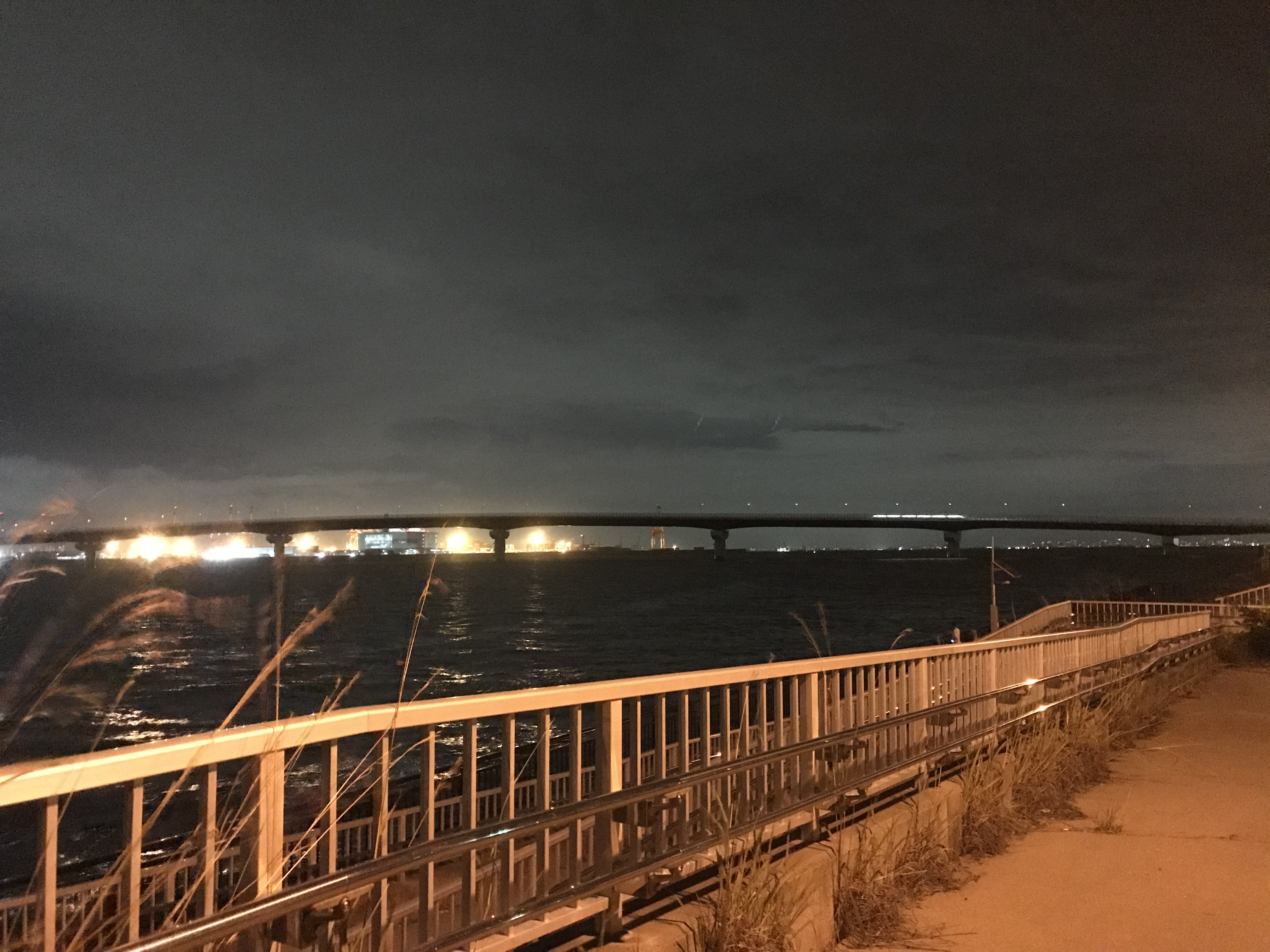 神戸空港ベランダについたら、すっかり雨はやみ、しっかりと場所を確保してアジングを開始しました。