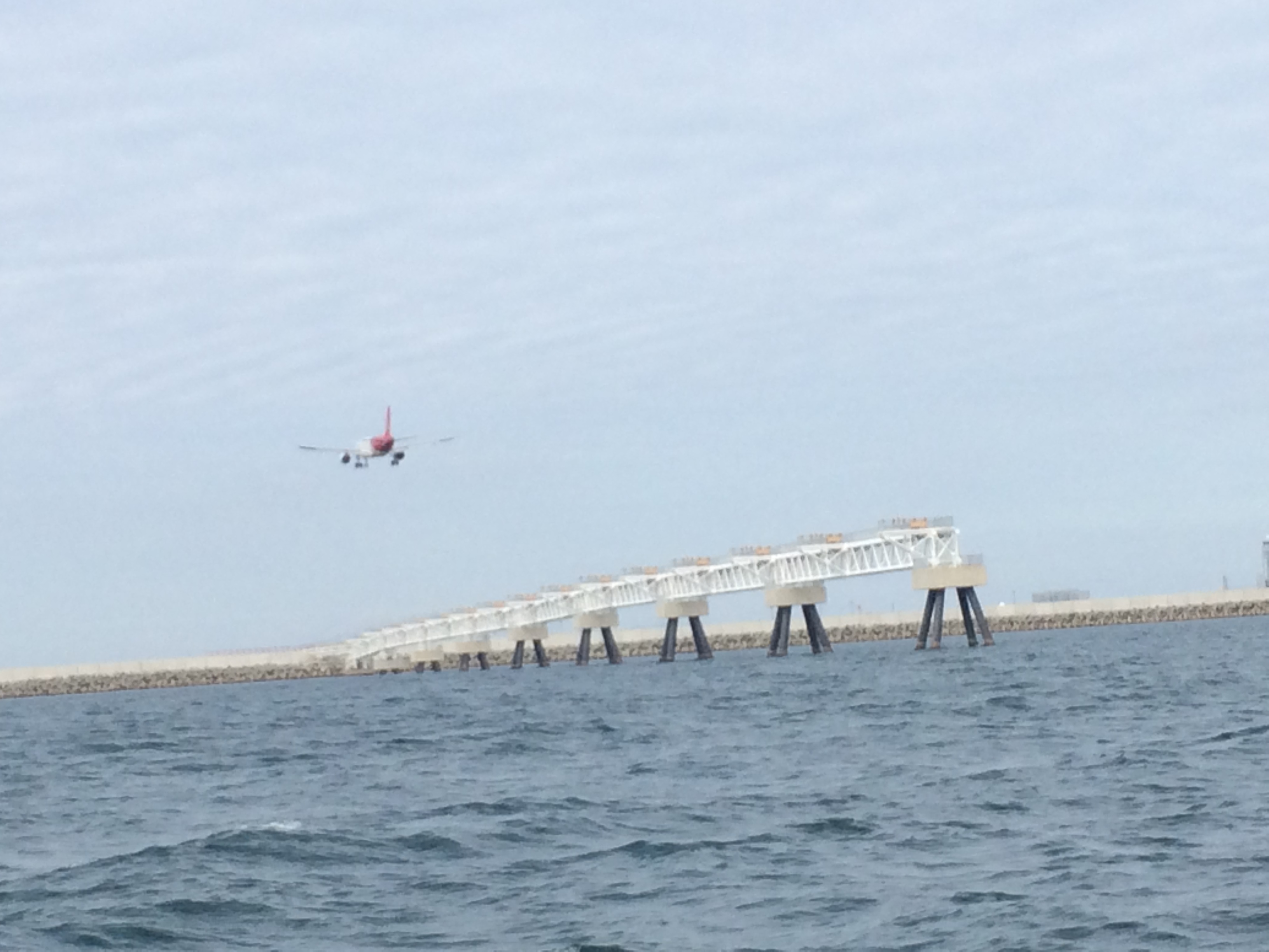 マリーナから出港し北と南の航空導灯を少し離れたところから、空港ウオッチングしたら