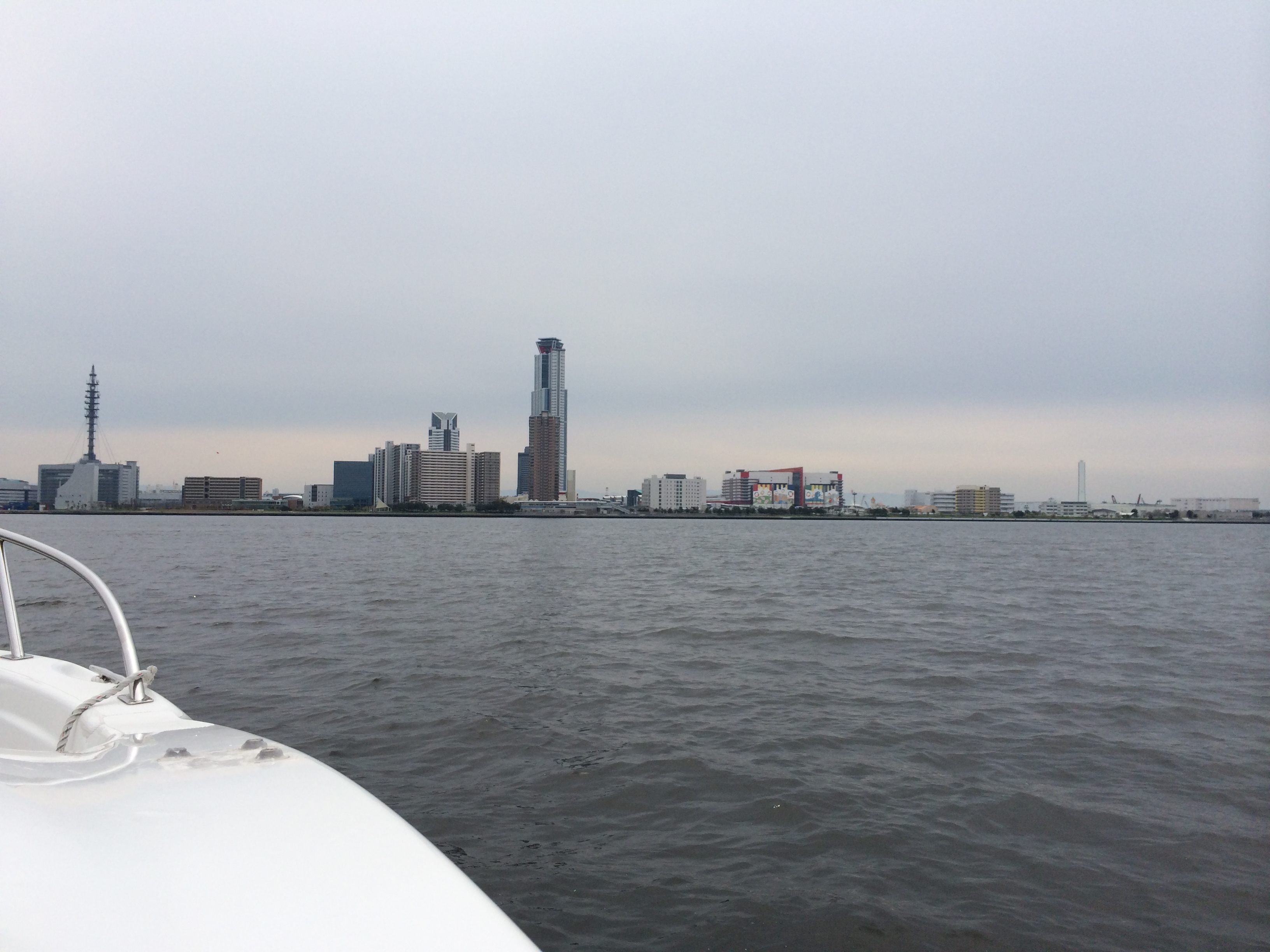 まず、出港してからの目標物は、かつての「大阪ワールドトレードセンタービル」いわゆる「WTCコスモタワー」現在の「大阪府咲洲庁舎」です。