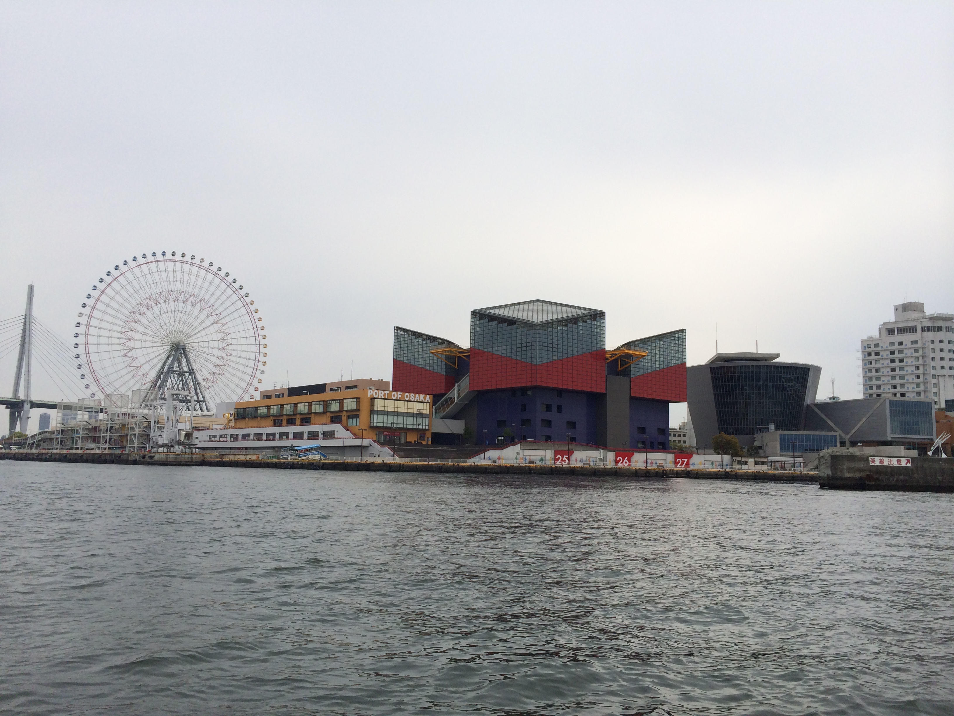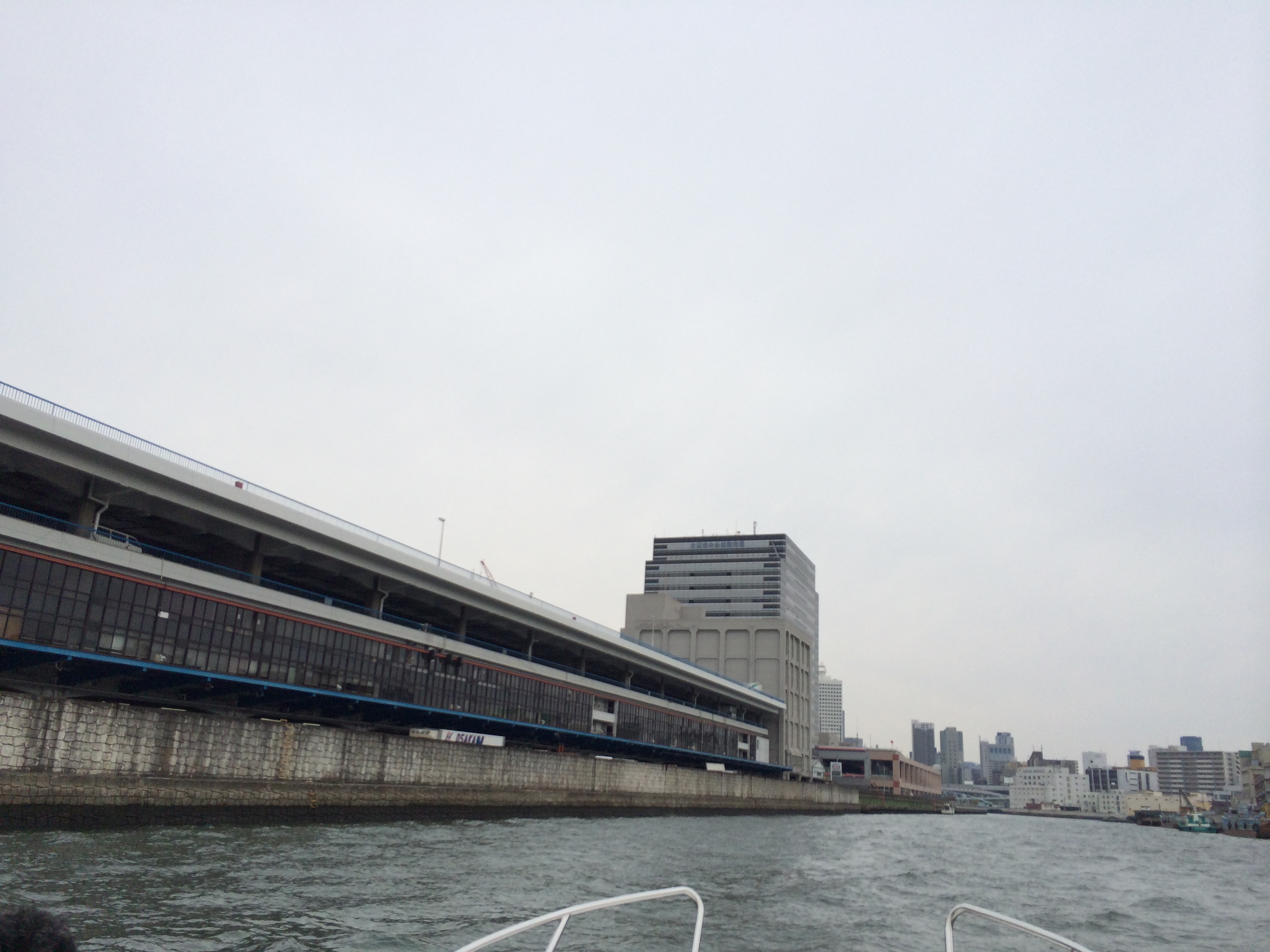 この辺りから左手に大阪港の天保山の「海遊館」が見えてきます。