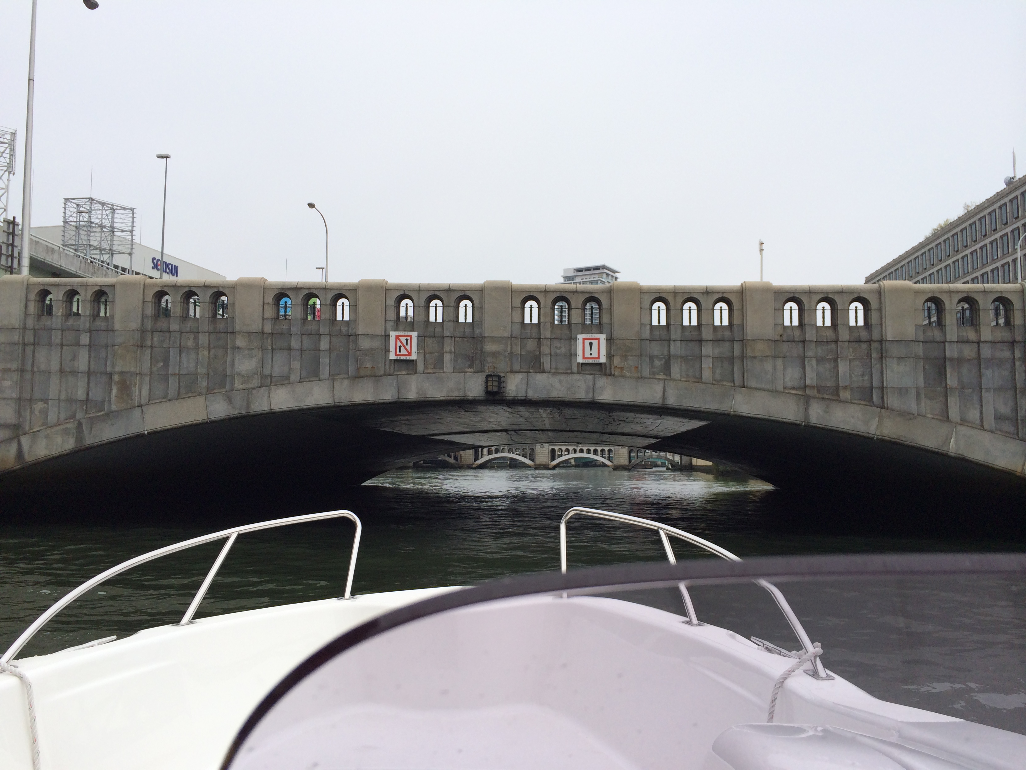 堂島川に入ってから低い橋の下をくぐり抜けていくため、ご覧の通りオーニングは取り払われています。