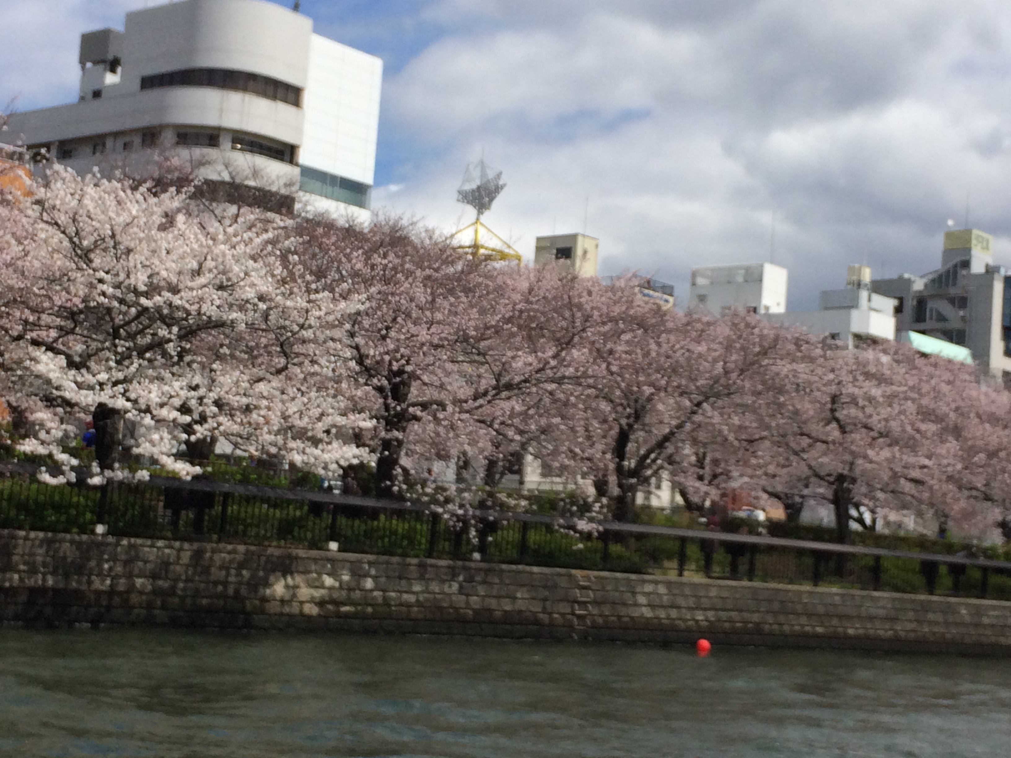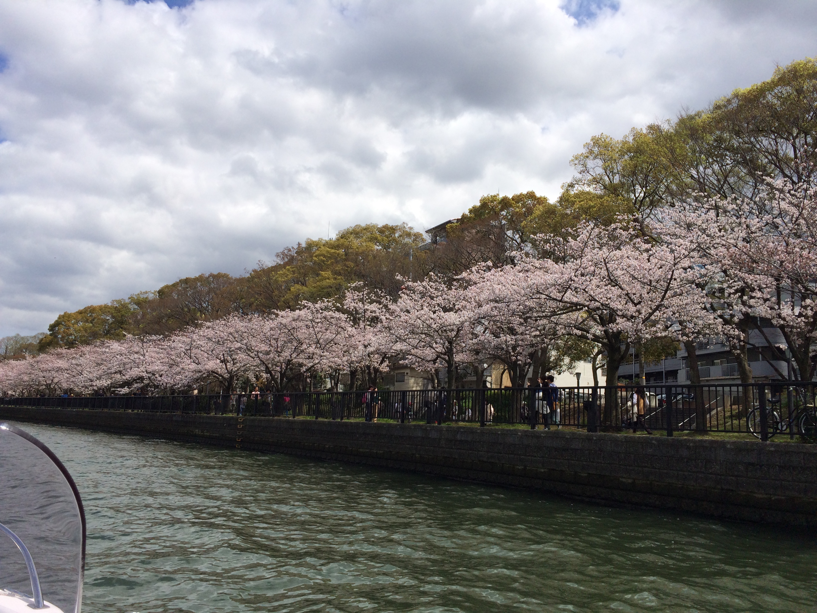 ここまで桜の木も、ちらほらありますが大江橋を過ぎたあたりから桜並木が本格的となり、見ごろのエリアとなります。